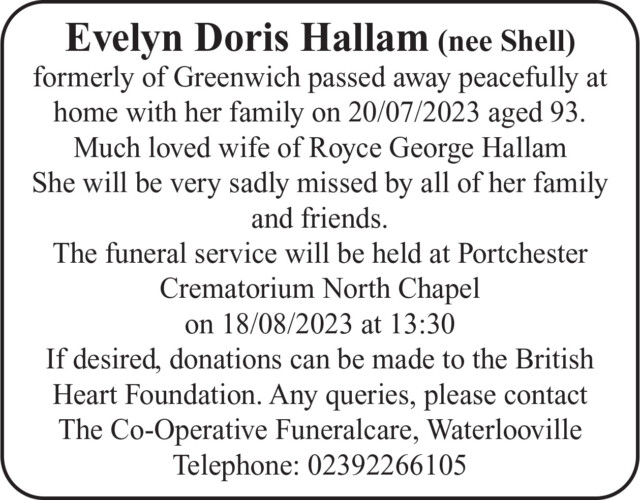 Announcements Evelyn Doris Hallam 11 August 2023 News Reporter Share this storyTweet Click to share on WhatsApp (Opens in new window) WhatsApp Related stories