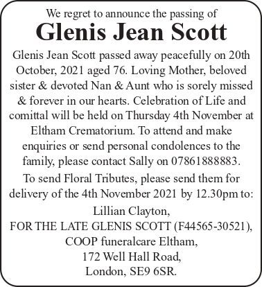 Announcements Glenis Jean Scott 19 February 2023 News Reporter Share this storyTweet Click to share on WhatsApp (Opens in new window) WhatsApp Related stories