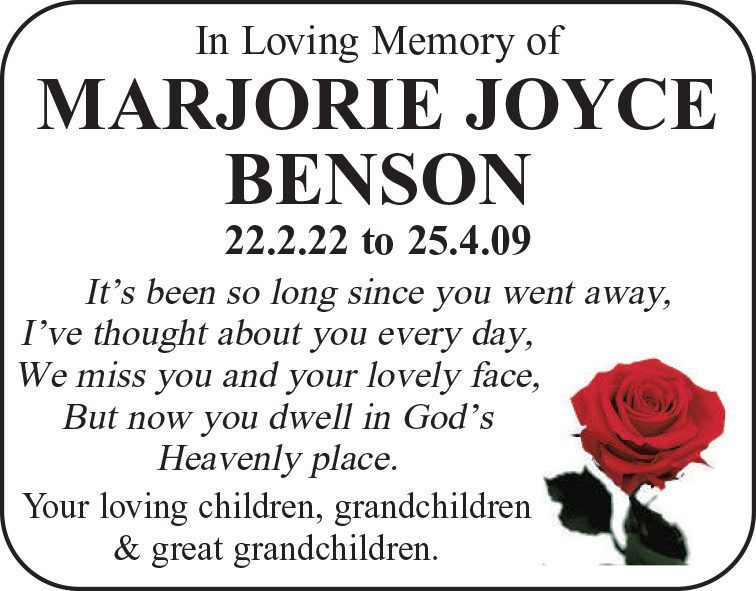 Announcements Marjorie Joyce Benson 19 February 2023 News Reporter Share this storyTweet Click to share on WhatsApp (Opens in new window) WhatsApp Related stories
