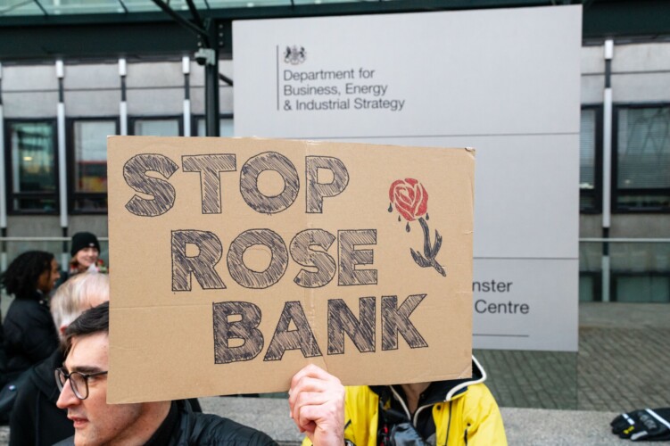Pictured top: A protester holds up a sign against the Rosebank oil field (Picture: Fossil Free London)