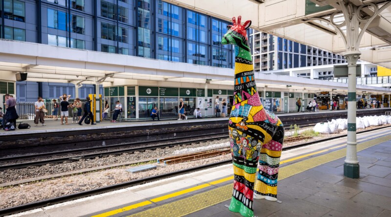 Pictured top: Giraffe waits for a train at East Croydon station (Picture: Croydon Stands Tall)
