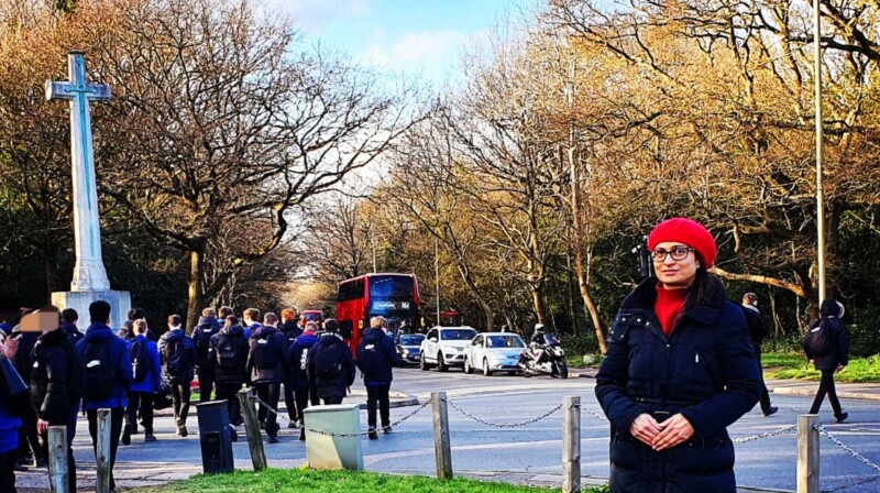 Pictured top: Sarah Gill-Schmitz, who is campaigning with other parents and residents to get safer road measures implemented at the controversial crossing (image: Sarah Gill-Schmitz)