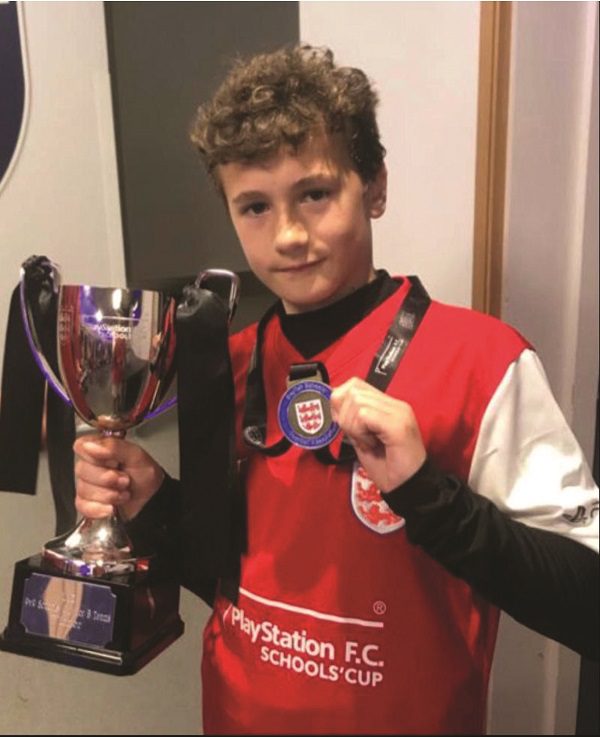 A 12 year old schoolboy has led his school team to victory in the finals of the England Schools’ Football Association tournament.
