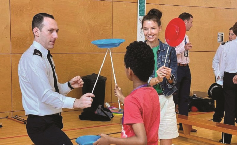 PC Ross Farrer teaching circus skills to children at the Lambeth Summer Camp