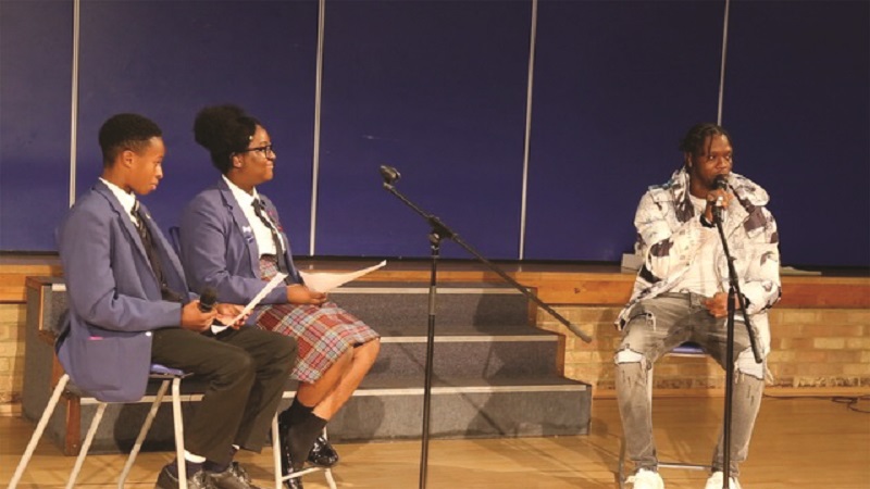 The rapper was quizzed in a Q&A session and watched students perform their own songs.