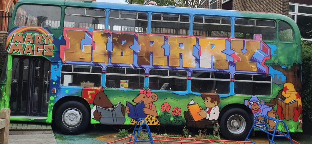 The idea for a London bus to be converted into a library was first mentioned in the school’s staff room nine years ago by teaching assistant Lauren McElwee.