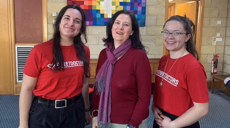 Pictured: Line-up of three women: from left to right: Dorothea Stathaki, Street Doctors volunteer; Susan Patterson, organiser; India Wardle, Street Doctors volunteer.