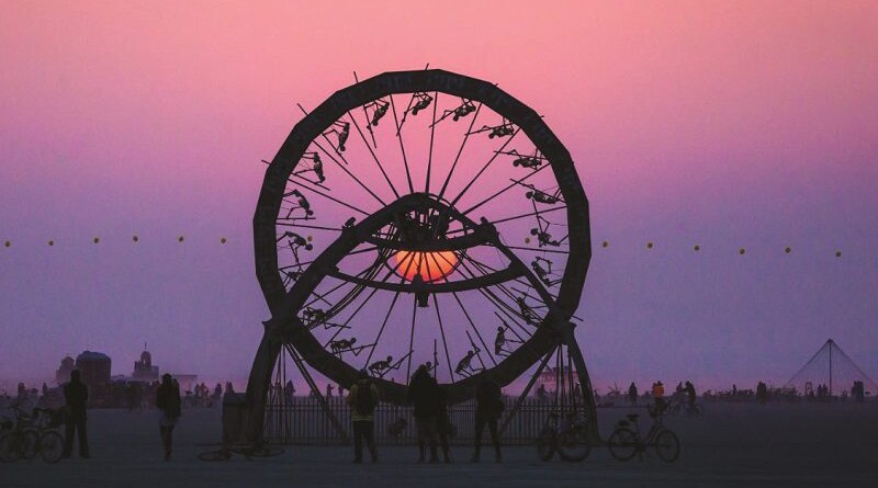 Peter Hudson’s Charon, a 32ft high artwork featuring Zoetrope technology at a new festival site in the Royal Docks.