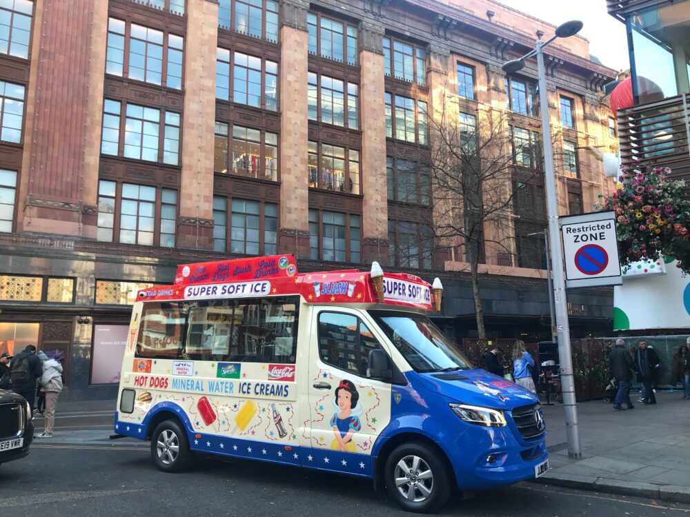 Outside Harrods, an ice cream van was also parked up on a double yellow line. He had already been fined that day by another parking inspector.