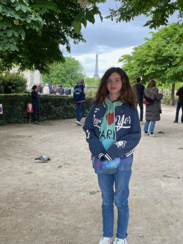 Nellie at the Jardin des Tuileries, with the Eiffel Tower in the background (Picture: Charlie Stong)
