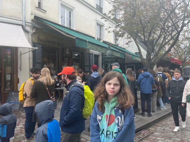Our booking was for 1pm and, after spending a couple of hours in the Louvre, including a peek – at first from some distance – at the Mona Lisa, we moved on towards our second stop of the day, the wonderful Shakespeare & Co bookshop on the Seine’s Left Bank, down by the Notre Dame.