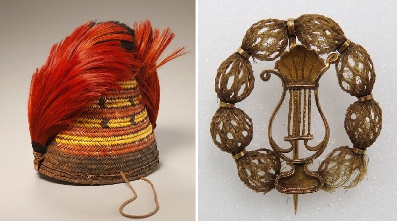 The show explores the potential of hair as a material and how it is used in jewellery and dresses to armour and environmental protection.
