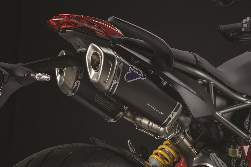 A carbon plate holder, flanked by approved Termignoni silencers with titanium sheaths and steel bottoms and dynamic LED indicators, give the ‘Hyper’ an even more dynamic and edgy image.
