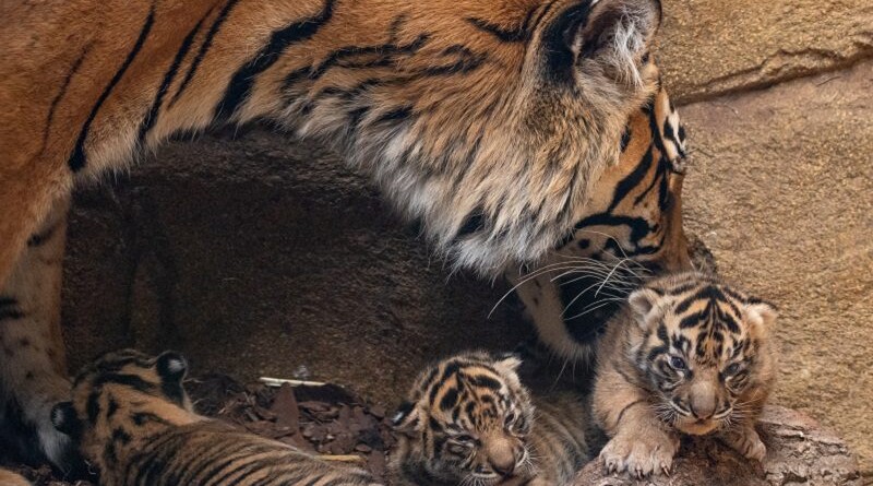 Stunning images of Sumatran tiger cubs born at London Zoo are released
