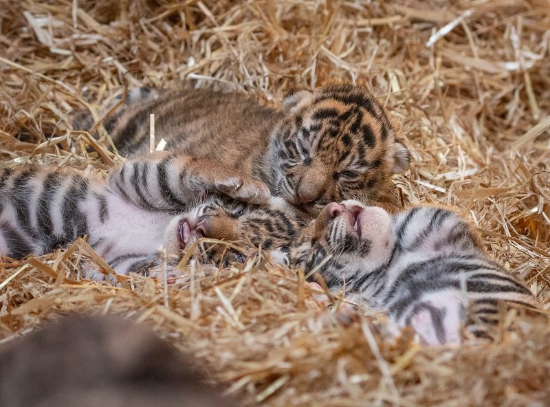 Pictured top: Sumatran tiger cubs in straw at ZSL London Zoo (All pictures: George Cuevas ZSL London Zoo)