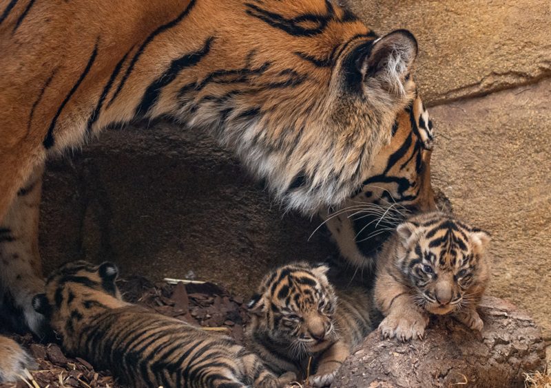 The cubs remained inside the Zoo’s behind-the-scenes cubbing den for the first few weeks of their lives, before recent warm weather prompted Gaysha to bring them outside – to the delight of the crowds.