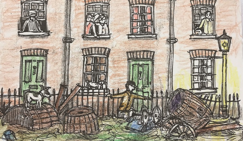 He was waist deep in icy water and clinging to railings as barrels, huge floating out of the victualing yard where the 17ft-tall wall had collapsed, threatened to crush him.