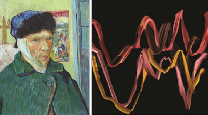 Picture: Van Gogh’s self-portrait alongside brainwaves. Picture: Art Fund / Hydar Dewachi