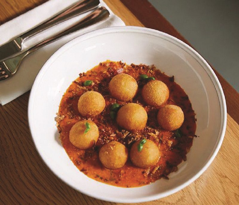 Chef’s potato parcels were light and fluffy inside with a crispy outer to enable a coating of sauce but protecting the flavours inside.
