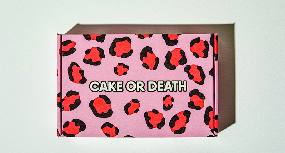 Cake or Death’s festive flavours come boxed in striking white and silver leopard print.