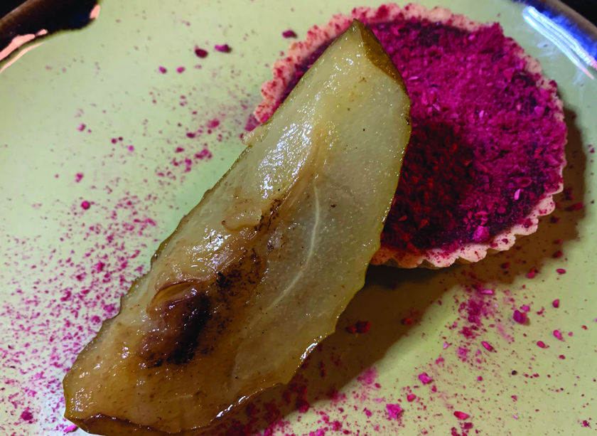 There was just one dessert on the menu – chocolate tart with raspberry and pear – which felt a little odd.