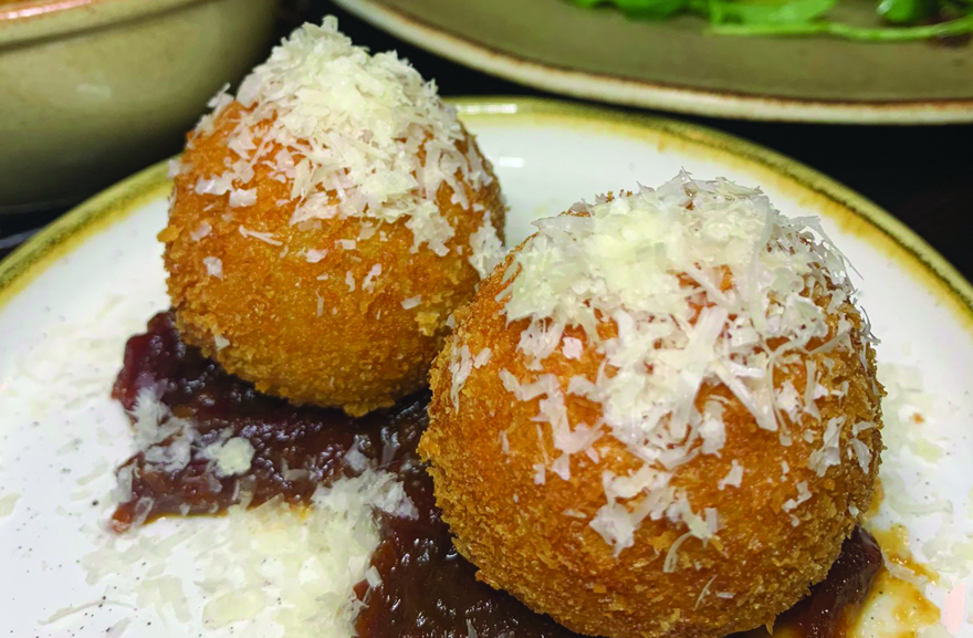 Smooth, silky, cheesy filled golden balls, served with a tomato and chilli relish, a knock out combination.