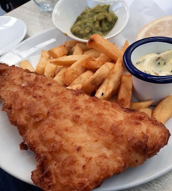 Proper fish and chips don’t come cheap here – cod and chips will set you back £23 and includes mushy peas and tartare sauce.