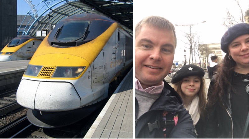 Main Picture: Charlie, Hayley and Nellie at the Arc de Triomphe; Eurostar train