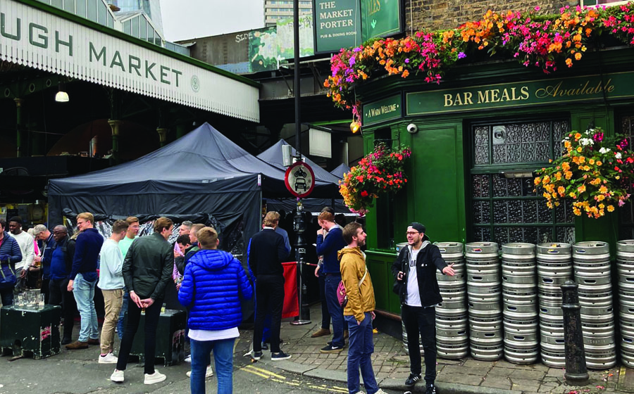 One of 12 Market Tavern pubs across London, the Market Porter always seems as if it is overflowing with customers – market workers and customers, tourists and a lot of people in suits – clearly a popular venue for after-work drinks.