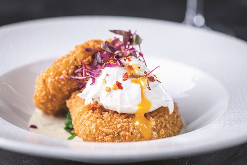 Smoked haddock Florentine fishcakes, seared salmon fillet and fish and chips will keep traditionalists happy.