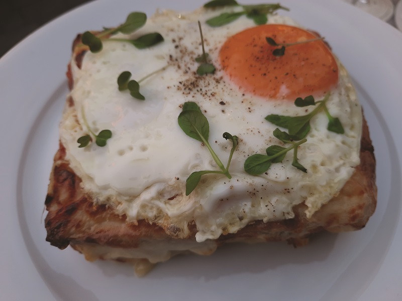 Lunchtime brings with it a host of salads, tartin – open-faced toasties, served with salad, as well as toasted sandwiches. A new one on me is Croque Royal – with smoked salmon and