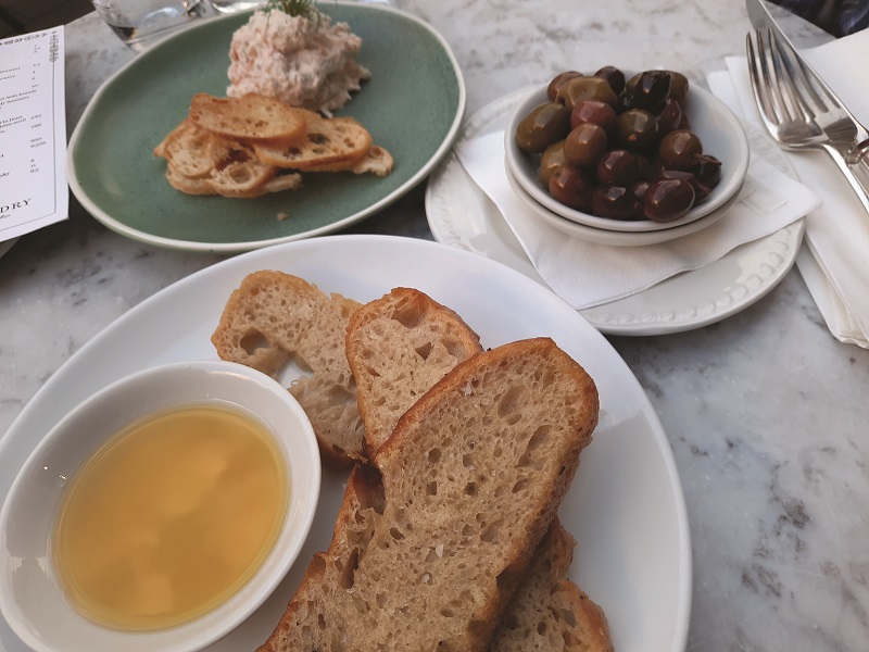 We shared four small plates – smoked salmon pate with croutons, sausage roll, focaccia with olive oil and banyuls vinegar, marinated olives, and the heavenly Croque Madame. Dishes start at £3, going up to around £10, and a few beyond. I like that fact that you can tailor your Laundry experience fit your mood and budget. People will travel for a good bakery.