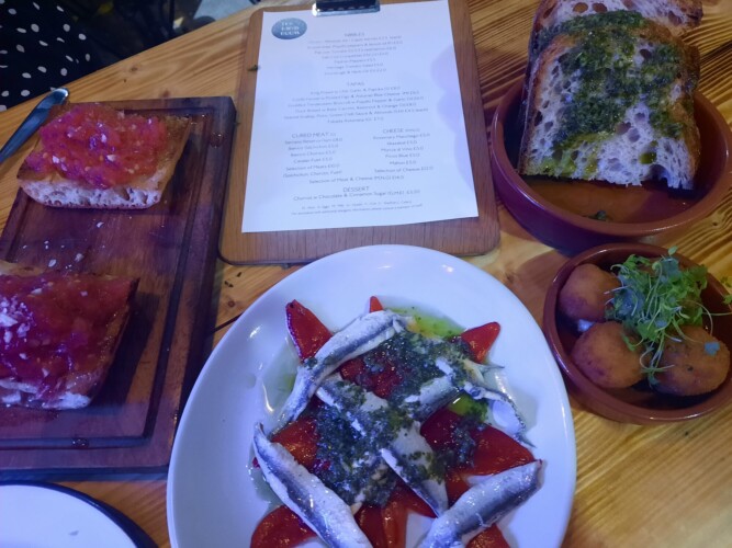 Boquerones, piquillo peppers and lemon oil (£5) or fresh anchovies are a totally different proposition to the jarred kind everyone buys to stick on a pizza or a Caesar Salad.