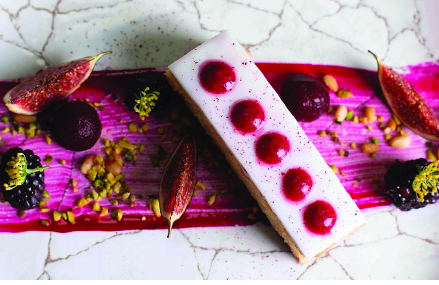 In a modern take on a classic, Beetroot Bakewell Tart, offers a sweet crumbly short crust pastry, with a layer of silky smooth beetroot jam, and an indulgently nutty almond frangipane filling, topped with fondant icing, beetroot gel and finished with beetroot sherbet.