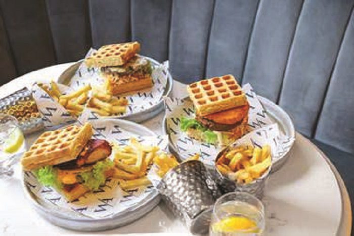 Take your pick from; Waffle Beef Burger with melted smoked cheddar; Waffle Spicy Breaded Chicken Burger with Sriracha mayonnaise; Waffle Grilled Halloumi and Falafel Burger with chimichurri sauce (v) and Waffle Beetroot Patty Burger with vegan cheese (vg).