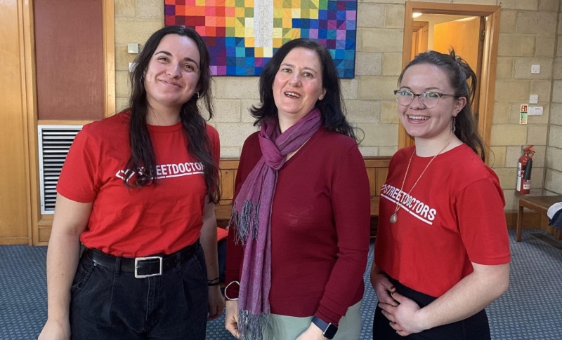 Pictured:  Line-up of three women: from left to right: Dorothea Stathaki, Street Doctors volunteer; Susan Patterson, organiser; India Wardle, Street Doctors volunteer.