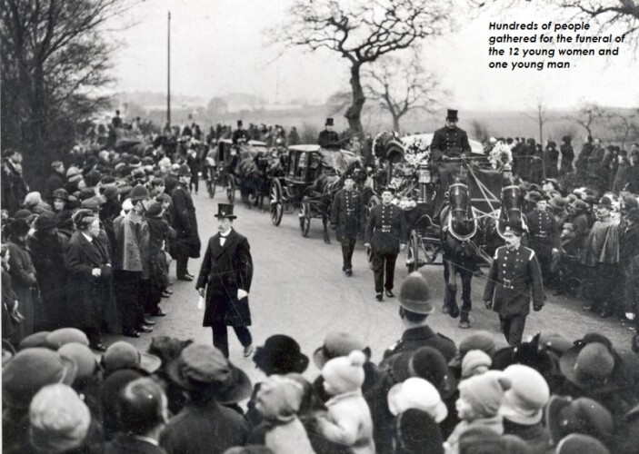Picture: Hundreds of people gathered for the funeral of the 12 young women and one young man. Pictures: Kent Firefighting Museum, Daily Sketch/Associated Newspapers Ltd, Mike Smith