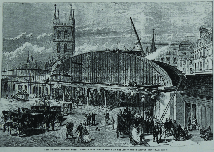 The units opposite Borough Market are part of a viaduct structure built by South Eastern Railway in 1863-1865 to bring trains from London Bridge into the West End at Charing Cross – the lines also go into the City at Cannon Street.