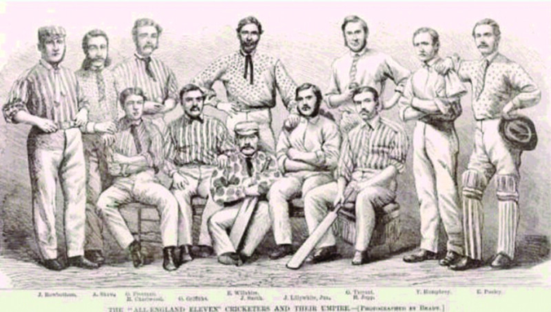 Main Pic: Team line-up: The team that toured North America in 1868-69; standing (from left): Joseph Rowbotham, Alfred Shaw, George Freeman, Edgar Willsher, George Tarrant, Thomas Humphrey, Ted Pooley; sitting (from left): Henry Charlwood, George Griffith, John Smith, James Lillywhite Junior, Harry Jupp Picture: Getty Images