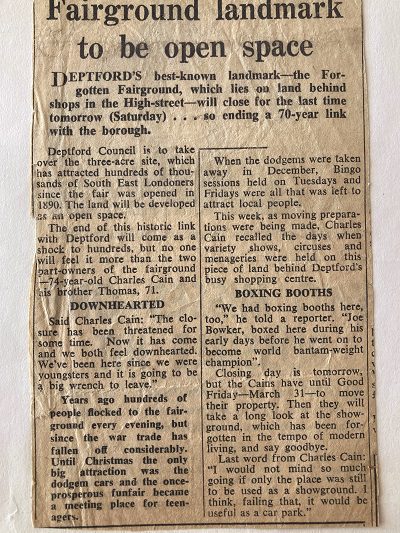 It had been a sad day for the family when the Show Ground was compulsorily purchased by Deptford council in 1961.