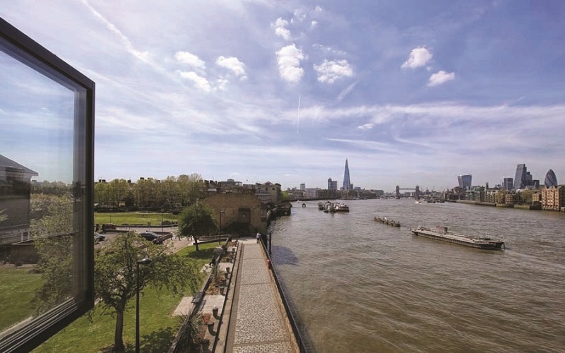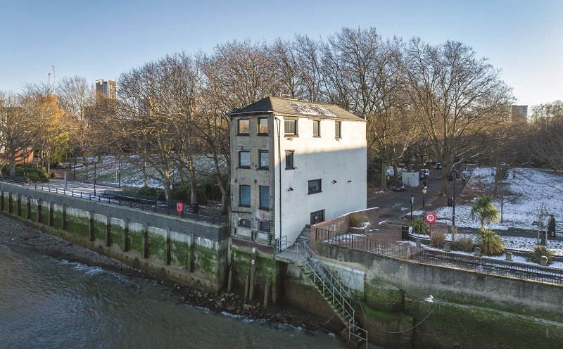 It is a unique and quirky detached property positioned directly on the River Thames in Rotherhithe, with panoramic views towards Tower Bridge, The Shard and Canary Wharf.