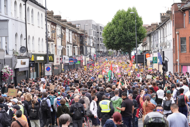 But, above them, crowds of counter protesters poured out across the pavements in nearby New Cross.