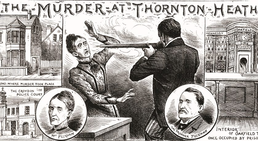 Main Picture: James Peckham shoots his wife, from the Illustrated Police News, January 14 1893. Note the sketches of the murder house and the old pub