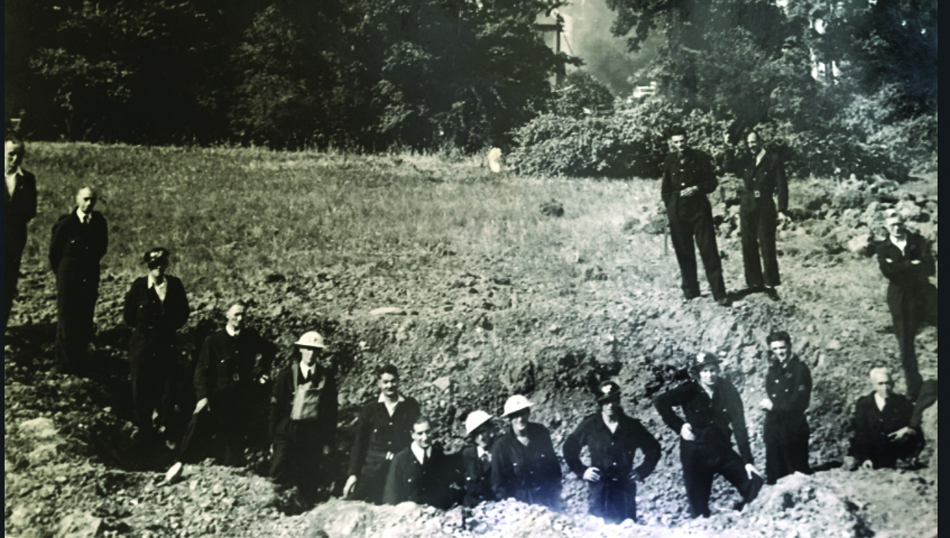 Main pic: At a bomb crater. Fred Roy is the left of the two gentlemen, top right.