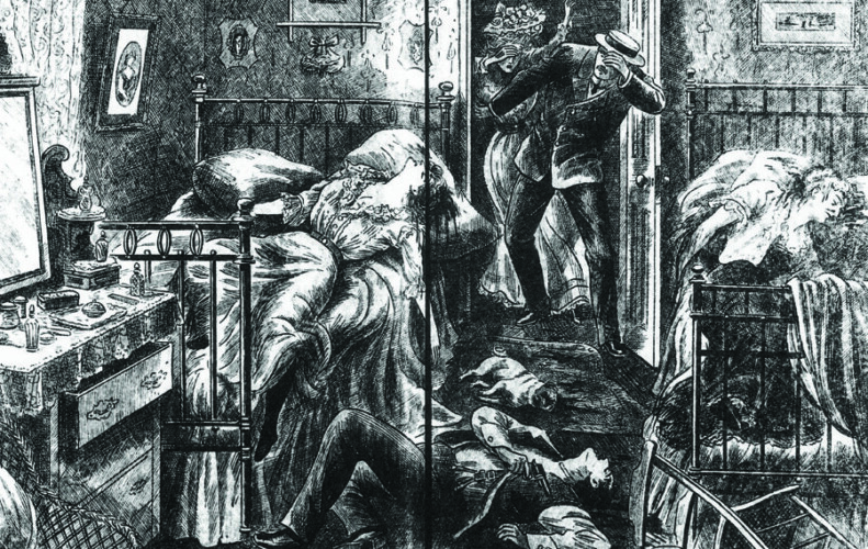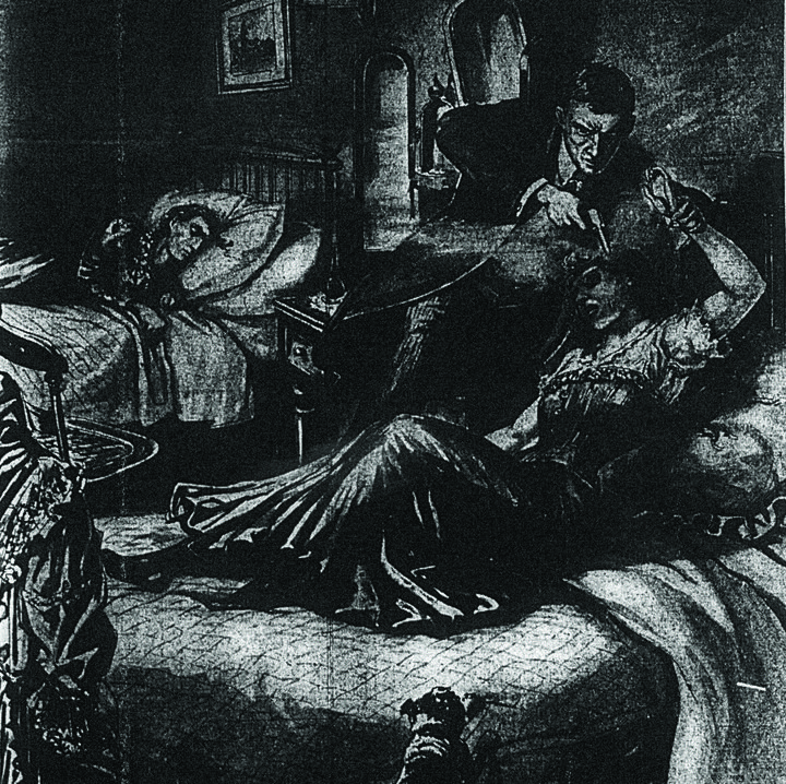 Main Pic: The carnage left behind by Francis Manser is discovered, from the Illustrated Police News, July 18, 1908.
