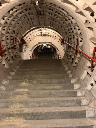 Entering from Balham Hill, our small group descended 180 steps down the shelter’s spiral staircase. 36 meters underground, the shelter is still remarkably preserved, well lit, cool and ventilated.