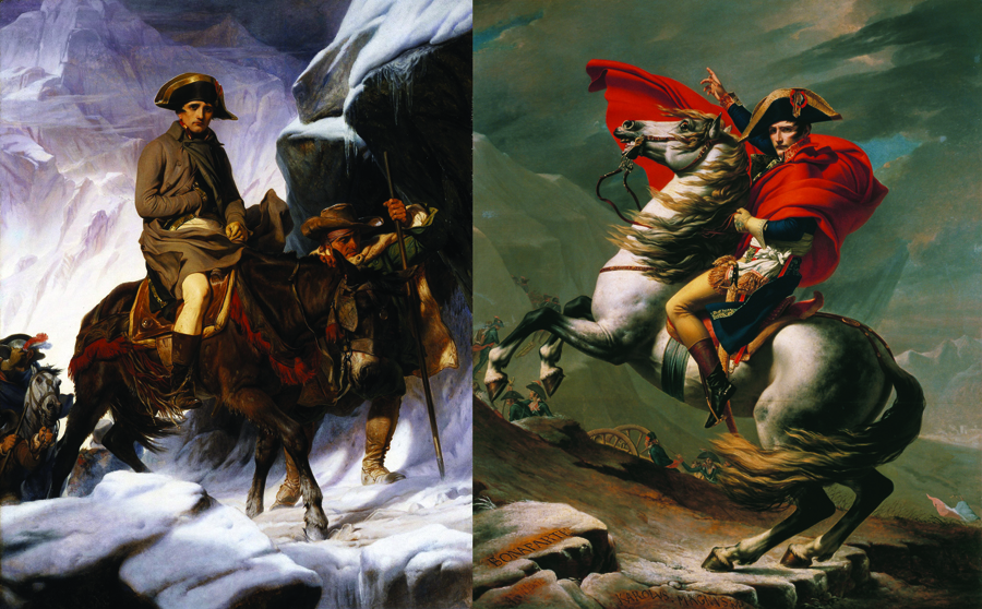 Napoleon Crossing the Alps (left) by Jacques-Louis David