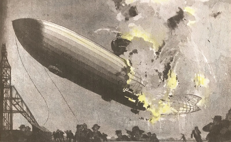 This time it was the giant German airship, Hindenburg (main picture), 800 feet long, coming into the mooring mast at Lakehurst, New Jersey, after crossing the Atlantic from Frankfurt with 97 people on board.