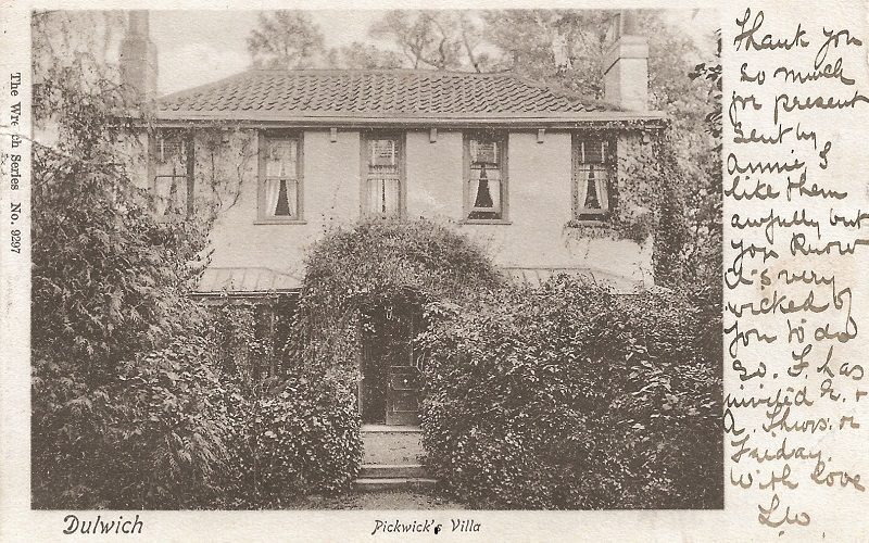 In June 1900, the Sphere newspaper wrote that “The house reputed to be Pickwick’s Villa is still existent in the ‘quiet, pretty neighbourhood in the vicinity of London’ – a good stone’s throw only from Dulwich College.