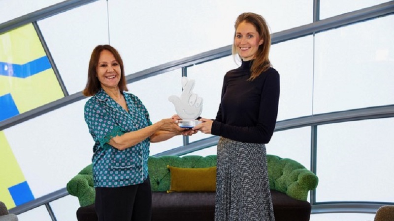 Pictured: Dame Arlene Phillips awards the Art, Film and Culture category to Emily Jenkins
